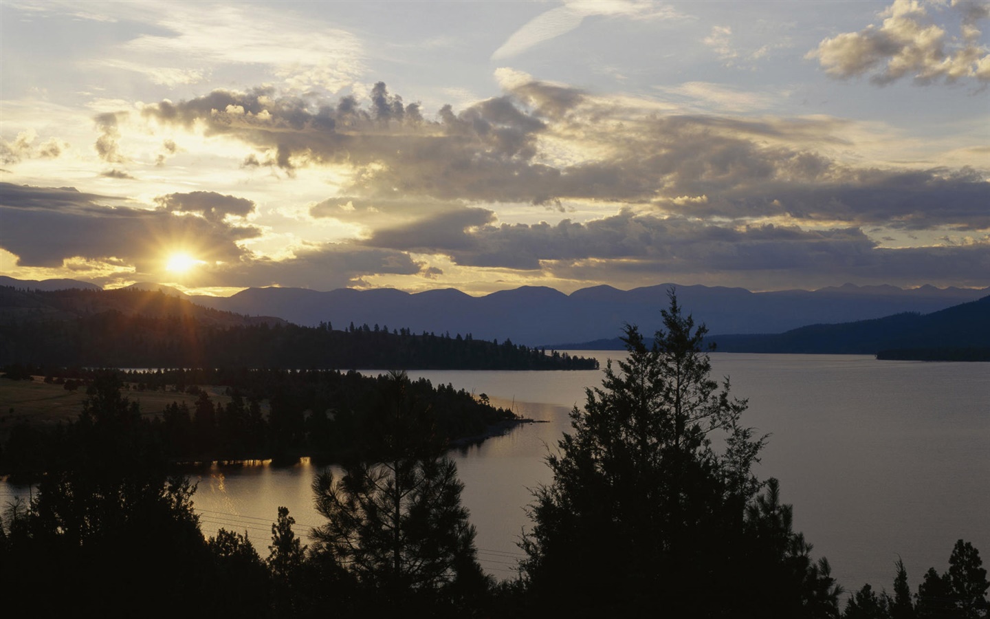 Río, árboles, mañana, salida del sol, los rayos del sol 1440x900 Fondos de pantalla